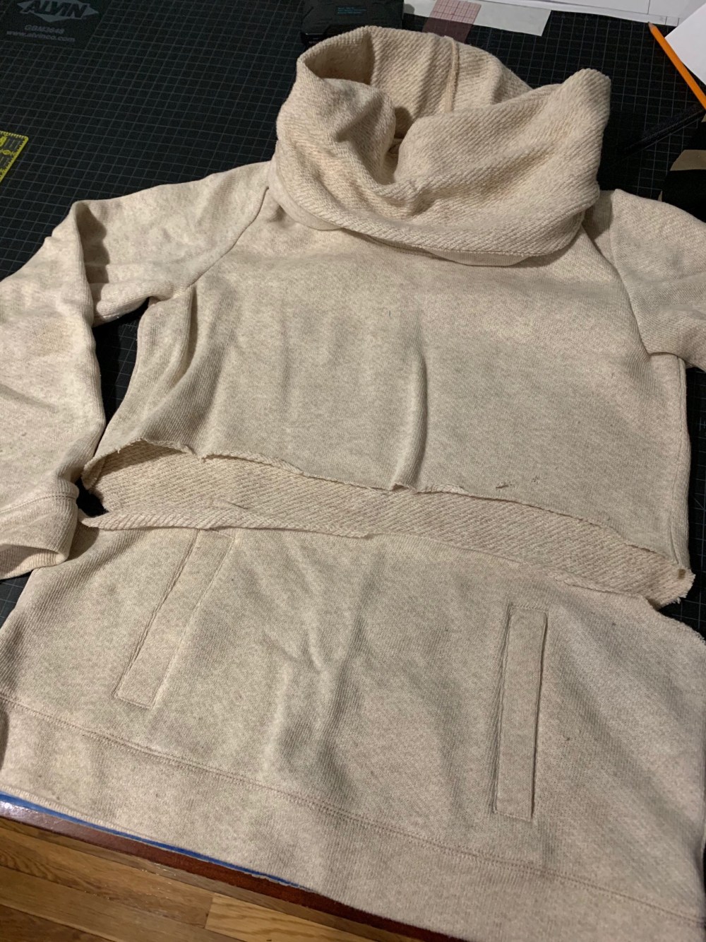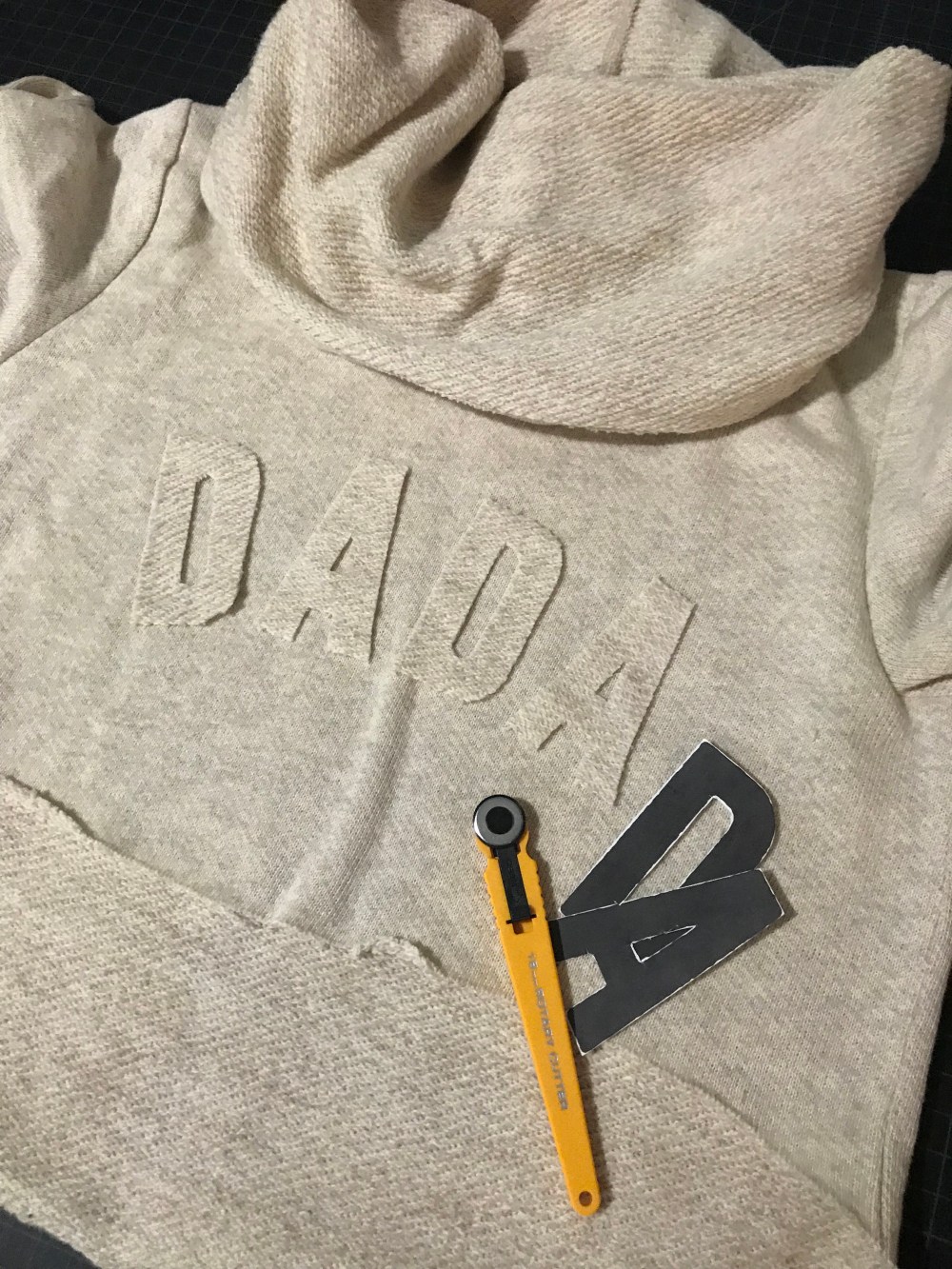 This JCrew cowl neck to became a casualty of the cleaners but I couldn’t throw it away. I kept it to refashion and thought to cut out letters to personalize it.