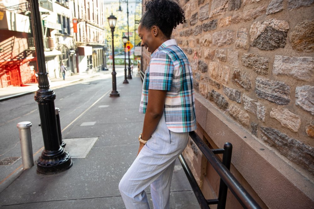 The plaid for this top is old old! I grabbed it from Joann’s back in summer of 2018! I had plans to make a button up shirt with it but not a regular one so it just sat around until this pattern (Simplicity 8889) came out and thought it would be really cute! I hadn’t planned to pair it with anything in particular but in my head it worked with the slacks from Simplicity 9114. Looking forward to wearing this combo when I go back to work.