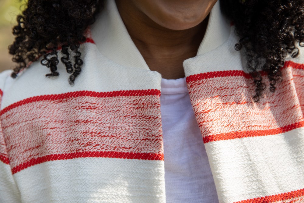 FABRIC :: Mood Fabrics :: 3yds of a striped specialty red & white striped for the jacket, half yard of an Italian rib for the bomber like collar (I can’t find either online unfortunately but there are great alternatives!!), and some chambray to make the bias tape binding.