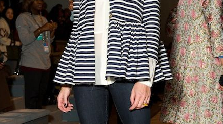 It wasn’t until I found the 3rd pic later on that I realized that my eyes had deceived me!! It was not a jacket collar at all. It was the collar to her blouse. WELLLLLLL, too late! My mind had already seen and loved the knit collar. I couldn’t go back now. It just didn’t feel the same!! 5. One last detail that caught my eye was the flat front on the ruffle portion. Shall we take a look??!? LOL
