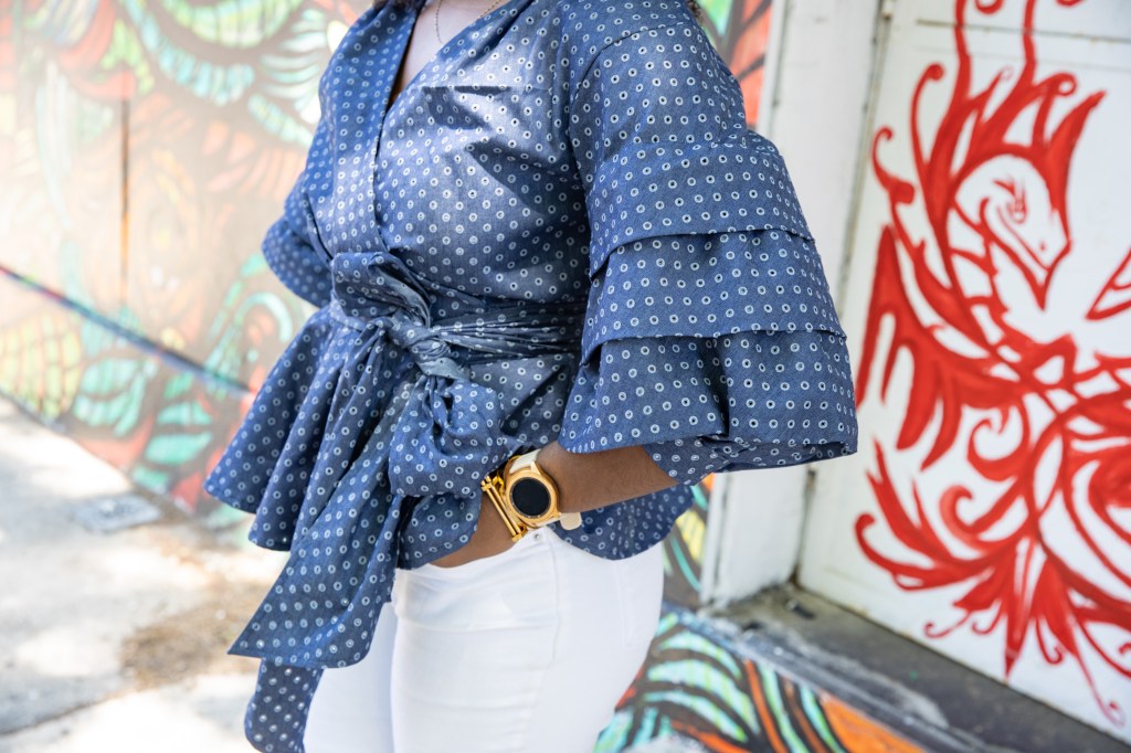 This was a pretty quick make. It took about a week from cutting to handstitching the cuffs. I would definitely make this top again and I would absolutely make the dress version as well. One note: my forearms are massive. The cuff band looked a little small to me so I luckily measured it before cutting etc and I added a little more for ease but it is still too small!! Could be all the working out I’m doing. **flexes muscles** Got my forearms BULKY!!! Haha
