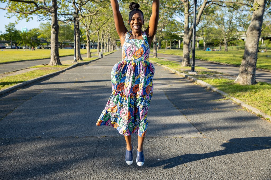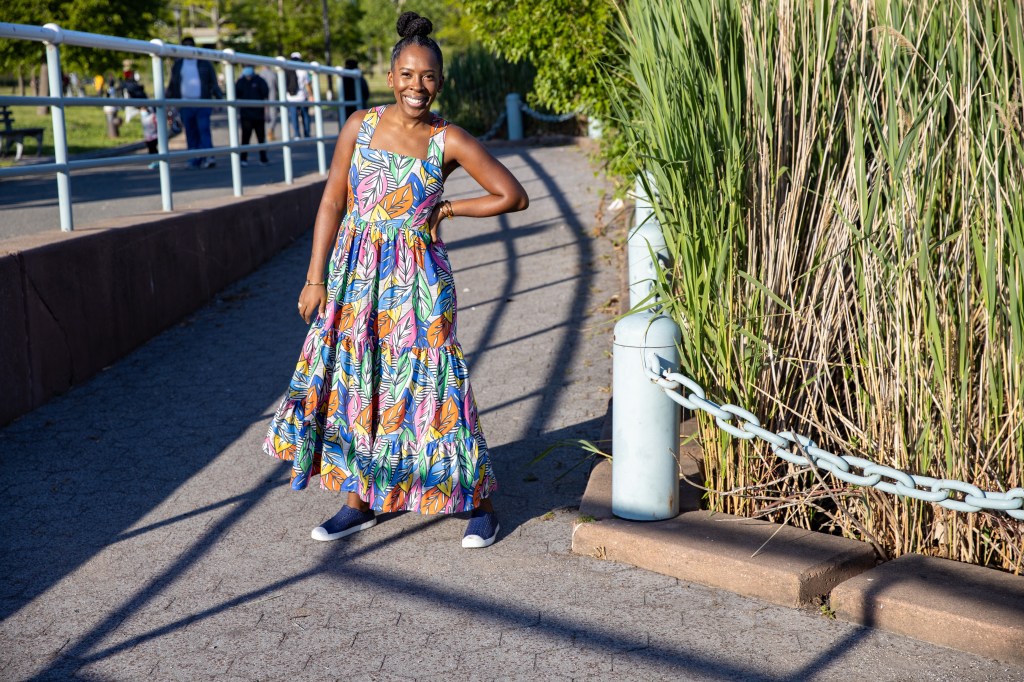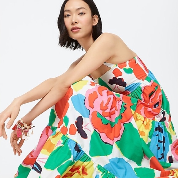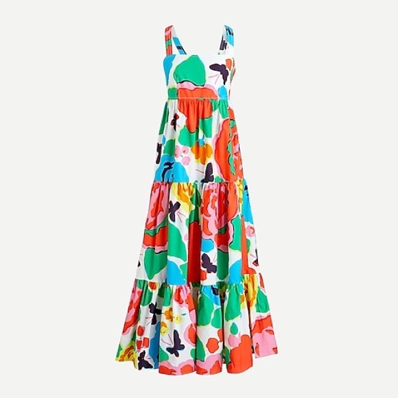Joy, of Oh Joy on IG, was wearing just such a dress on IG a few weeks back and I decided then and there that THAT was the dress that I would make for my next project collaboration with Mood Fabrics as part of their Sewing Blogger Network. It caught my eye immediately! Long and flowy, bright and called attention. So you know me! I screenshotted her stories like a crazy person but then she tagged and mentioned that it was this $248 JCrew dress (which is now sold out but I have seen some on eBay):