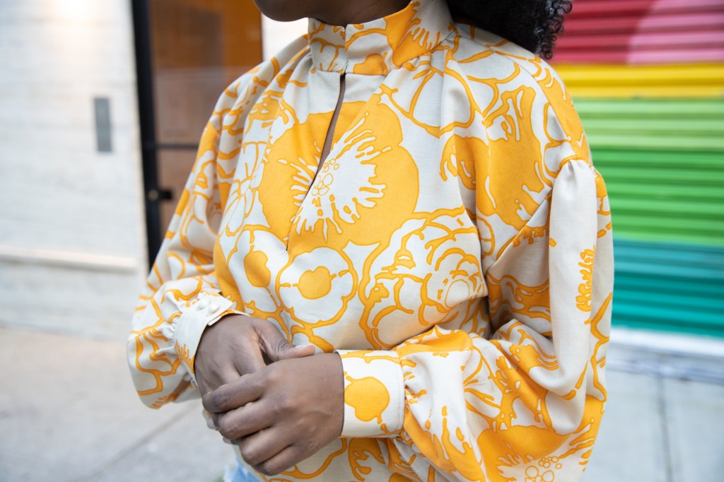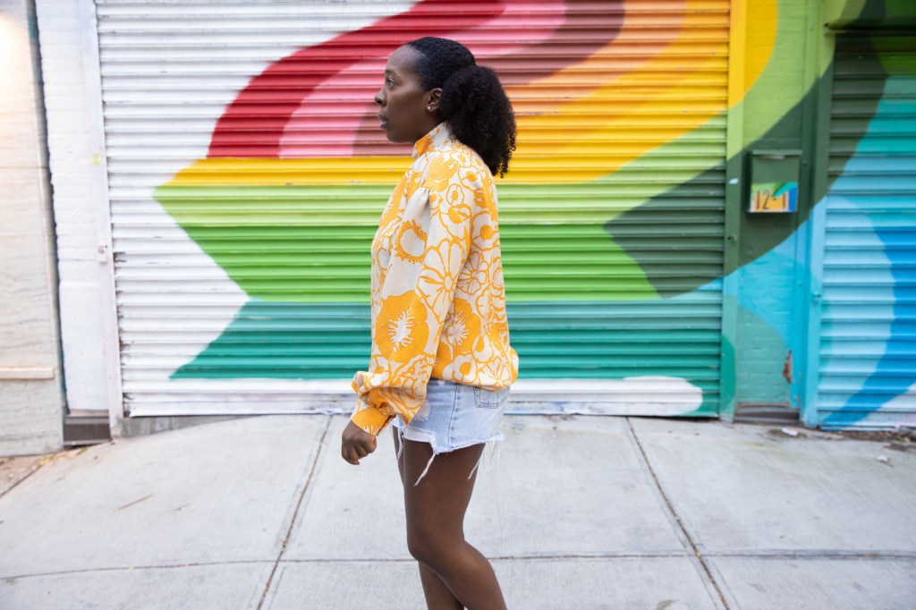 This post won’t be too wordy. I made this top from in March when I first went into isolation. I had been looking for more time to sew and the 4+ hours I gained not commuting and get ready had me on sewing marathons!! I hadn’t posted yet because I had other season appropriate apparel made that I posted and a few assignments but now? I looked and decided it didn’t have to wait for fall or winter inspired posts. I picked up this linen blend floral from Mood Fabrics because it was stunning and instantly caught my eye. It also looked really airy and great for the coming months. (It was in store but I couldn’t find it online unfortunately.)