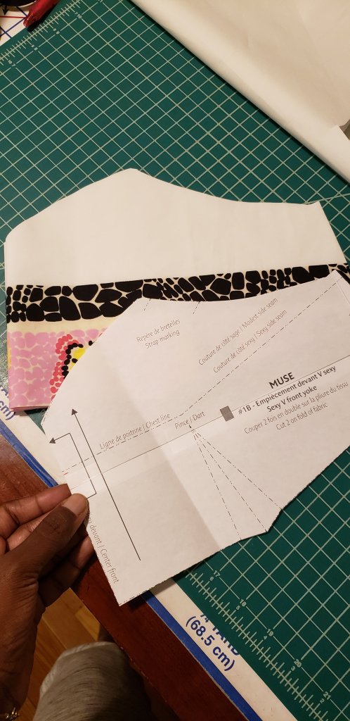 In my head, I wanted more butterfly to show but I really wanted the black and white border to hit at the apex so I lost the butterfly effect especially as i neared the side bust and back. Blah. that’s ok. I also opted to add a ruffle at the bottom but I didn’t shorten it to the recommended length to do that. I left it at full length and then added the ruffle. I like longer length dresses and ruffles. Adds more drama to me.