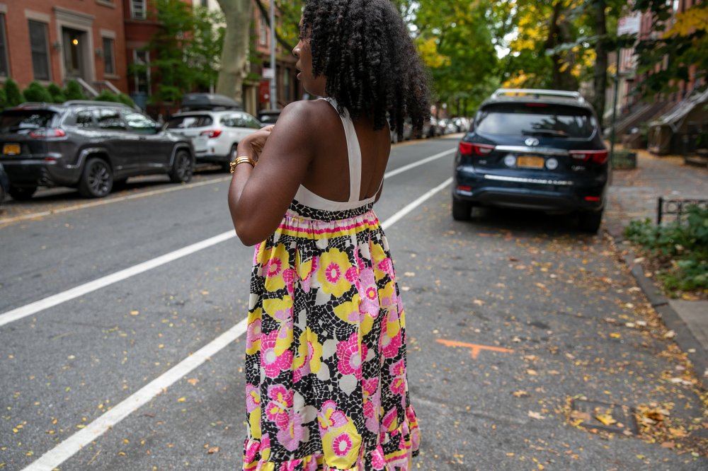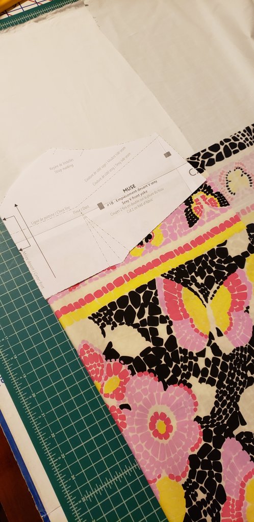 I was so graciously gifted this Muse pattern by P&M Patterns this summer. This is one of the clearest and most detailed patterns I’ve ever used! At every step, there was a clear explanation and notes I’d want to keep in mind. This pattern had so many variations that it took me a few days to decide how I wanted to sew this up. I was still in my figuring out mode when I came across this Anna Sui print at Mood’s NYC store. (not on their website, sorry!)