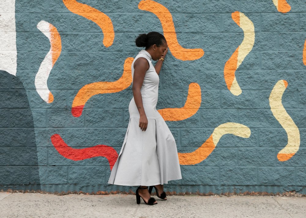 So I essentially cut off the bottom skirt of the pattern, did a slash and spread, added 4 inches to the width (Note to self, I should’ve slashed and spread the 4 inches I added on to give even MORE fullness and movement), and added 2 inches to the hem, and I cut out 4 pieces. I sewed 2 pieces together and aligned the seams of the skirt to the side seams of the bodice. I then layered right over left in the front then left over right in the back. I sewed it all up and TA DA!! Easy!