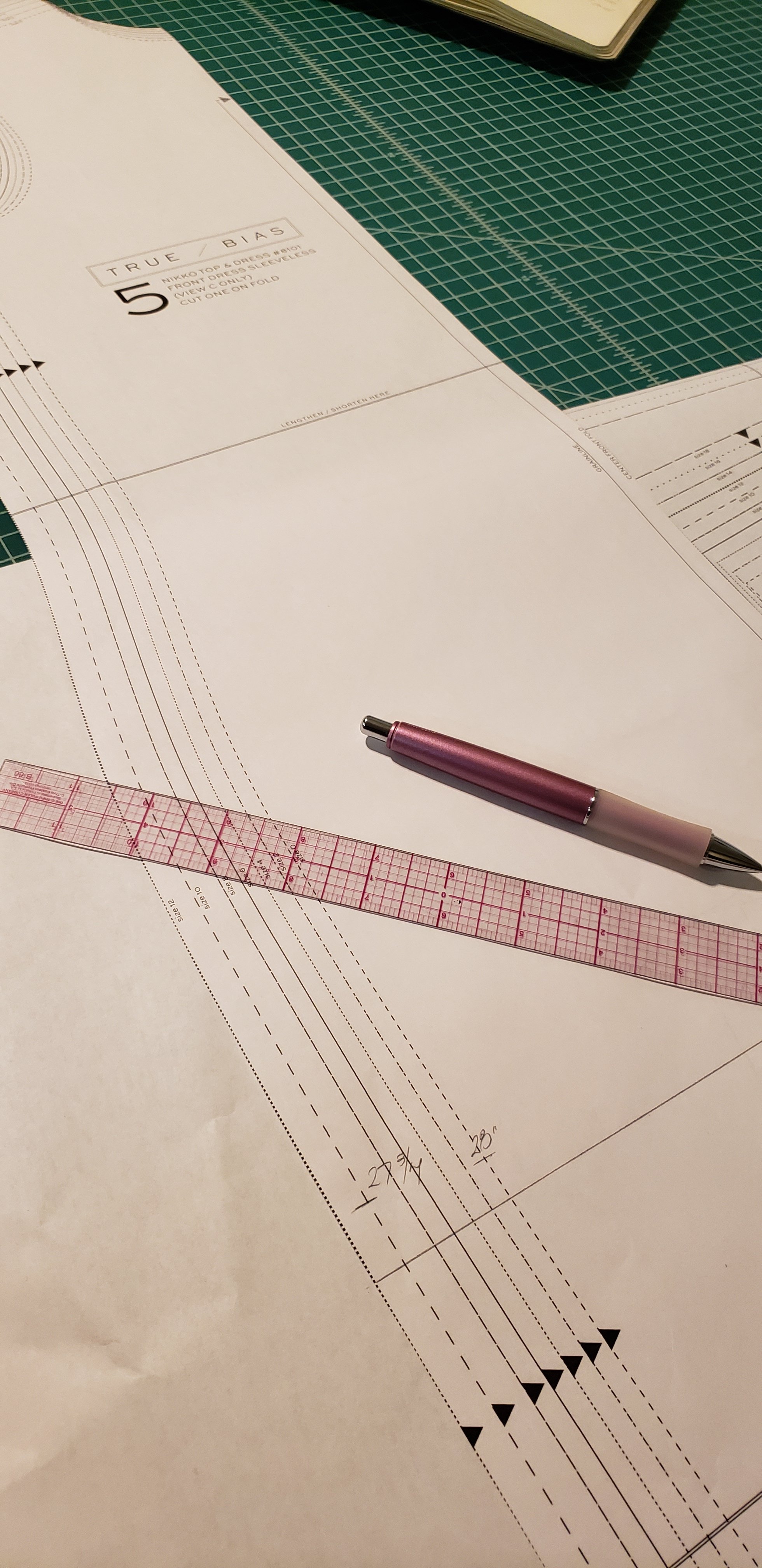- Measure where I wanted waist to drop down to. (literally measured from high point shoulder to where I wanted drop waist to hit and added seam allowance)