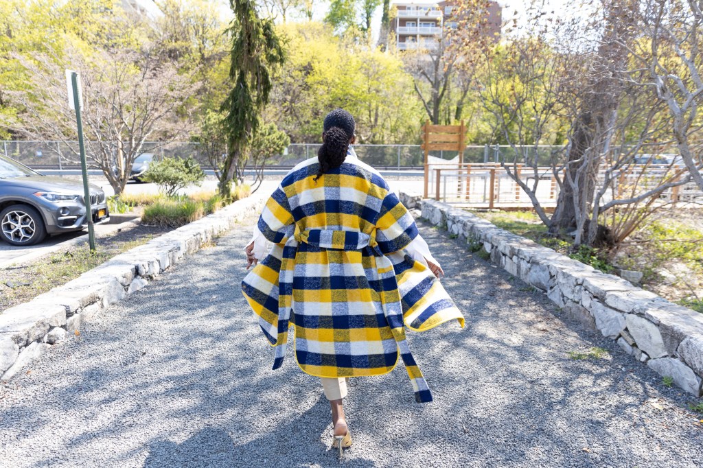 VERDICT :: I LOVE IT!!! I think it’s a great transition piece. It’s for draping over the shoulders or wearing open. The buttons aren’t for using and neither is the belt. HAHA. It’s warm but because it’s unlined and has short sleeves, I can get away with wearing it as the weather starts to warm up. Now I can really move on to making my summer clothes…….and try not to leave my outerwear for so late in the season.