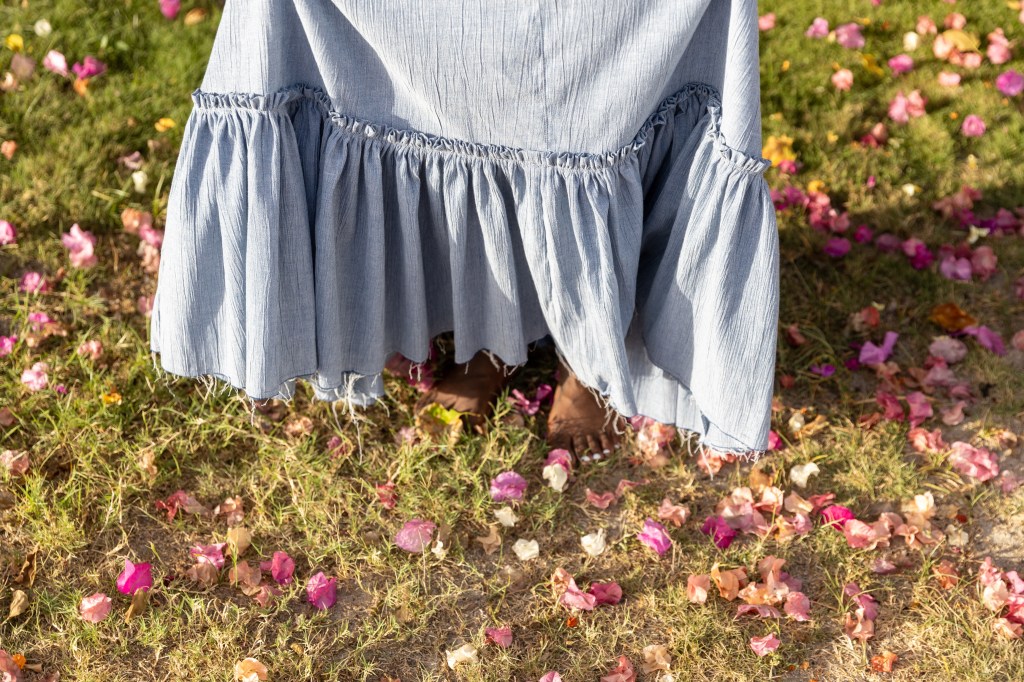 I wasn’t looking for any specific fabric when I went into AK Fabrics this day. I just like to take a look if I’m in the area. I found this soft light crinkle chambray and got 5 yards. They always ask what I’m making and a lot of times, I’m not even sure! I went home and thought this would be a perfect chance to hack the True Bias Ogden Cami into a maxi dress. I added a few of my favorite style details to make the perfect to wear maxi for an island vacay!