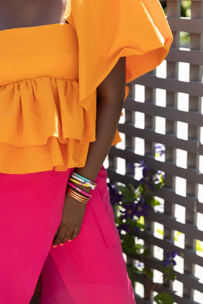 Boy has it been a while since I’ve made anything. I needed a very special outfit for a very special event today and as per usual, nothing in my closet would do. Although I have been making as much, I’ve still been accumulating fabric so I looked to my stash to make this set. One of my favorite makers, Susan, was clearing out her stash last year and I was able to grab a few yards each of this beautiful seersucker fabric in fuchsia, tangerine and white.