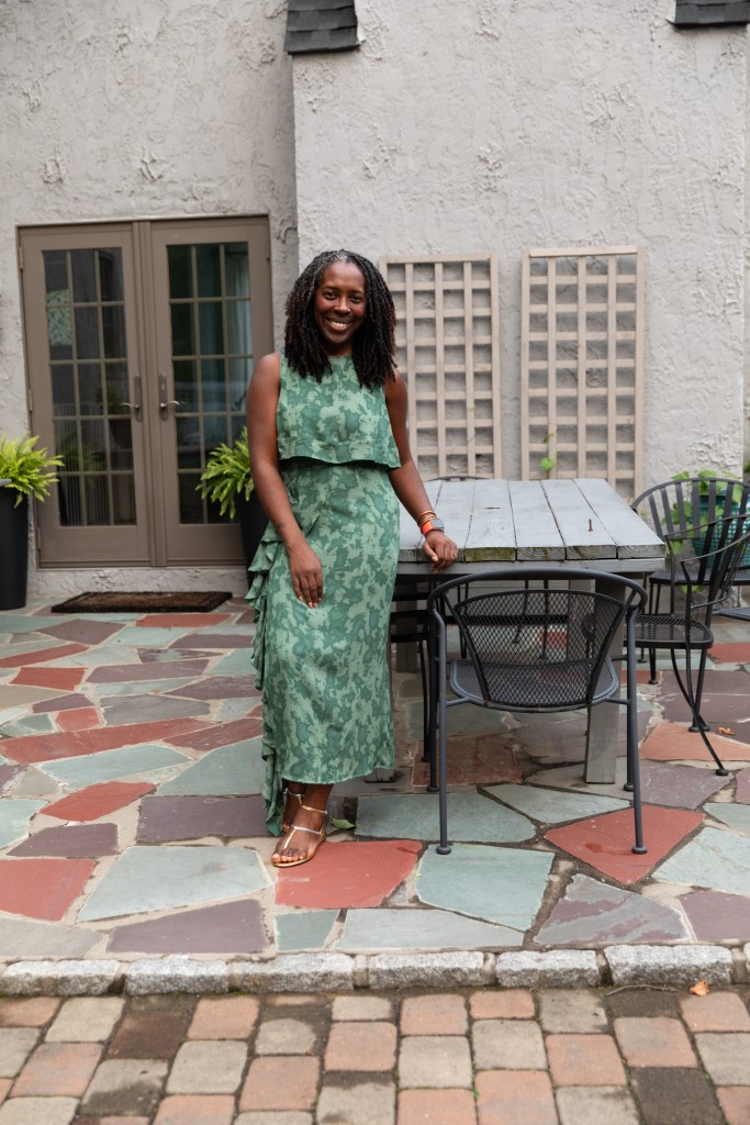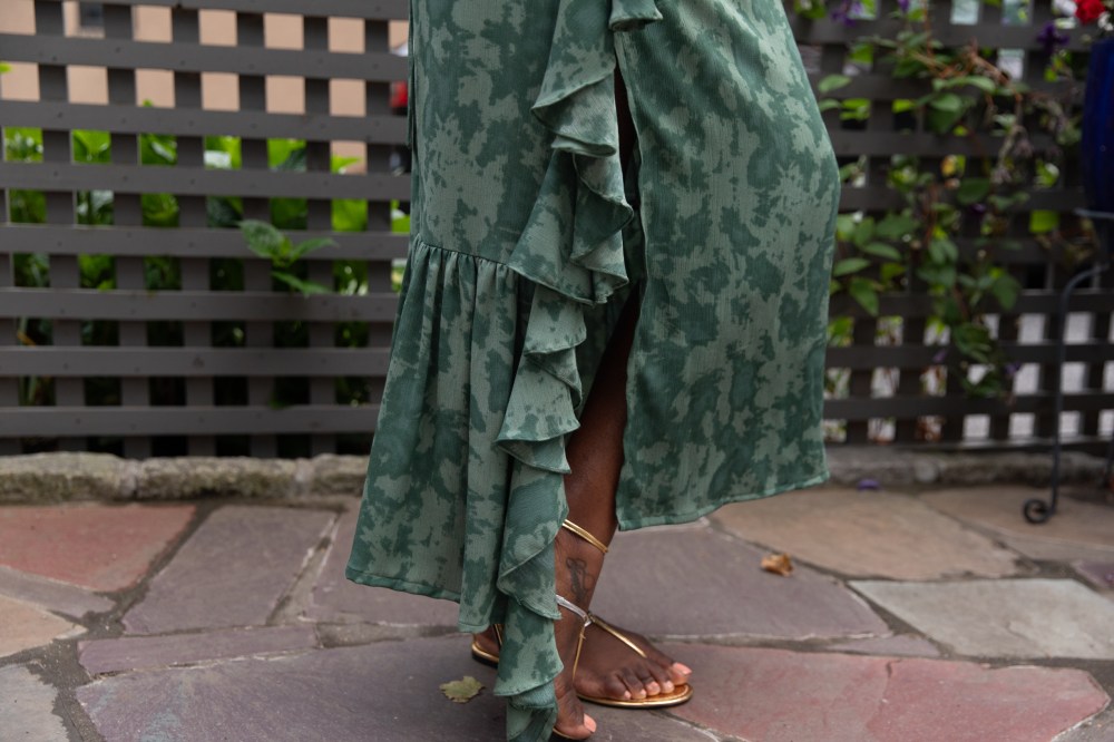 The base for the skirt is the Avery Skirt by Kdornbier Designs. I wanted a high-waisted straight pencil skirt shape that I’d make into a wrap skirt. I extended the length to 36″. I made the back body of the skirt 24″ and added a 12″ ruffle and added a wide flounce to the right side of the wrap skirt with the top of the flounce ending in the waistband. I made a super long waistband to wrap around and make a long bow when tied to the back. I added a snap closure a bit down the side of the wrap skirt for when I want a bit of coverage but I see me wearing this more on vacation over a bikini or a summer family bbq, like how I wore it last night.