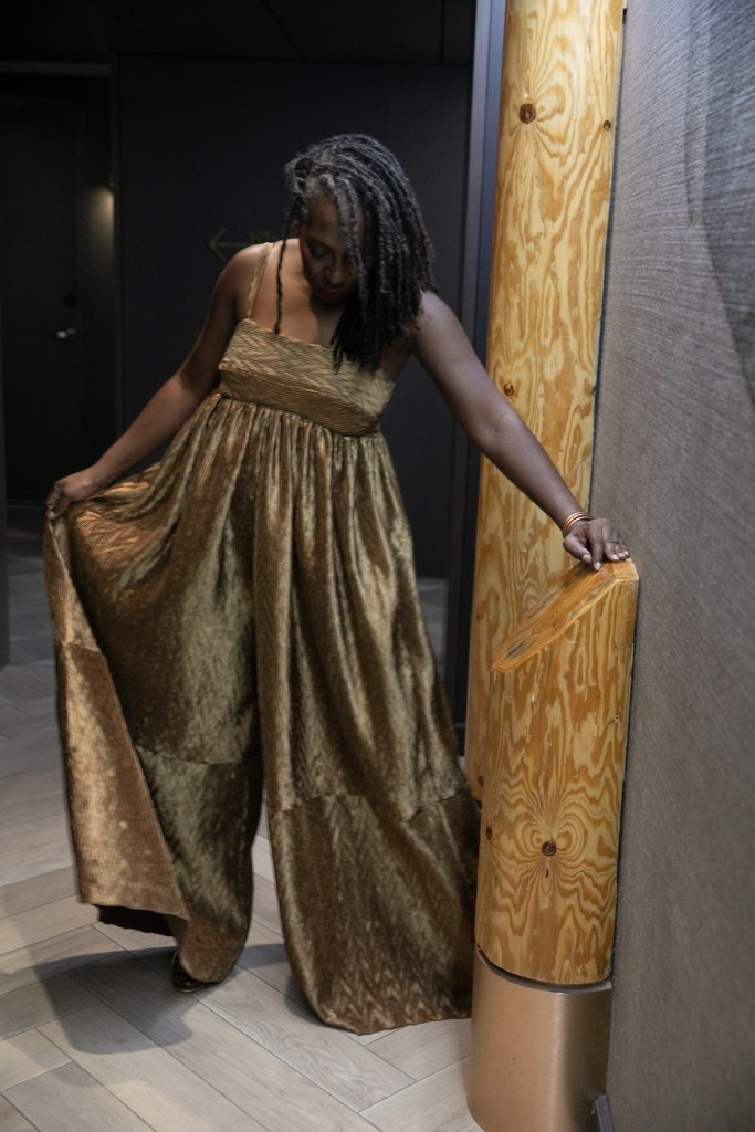 My jumpsuit was my third time using Lydia Naomi’s Bubble Frock pattern.