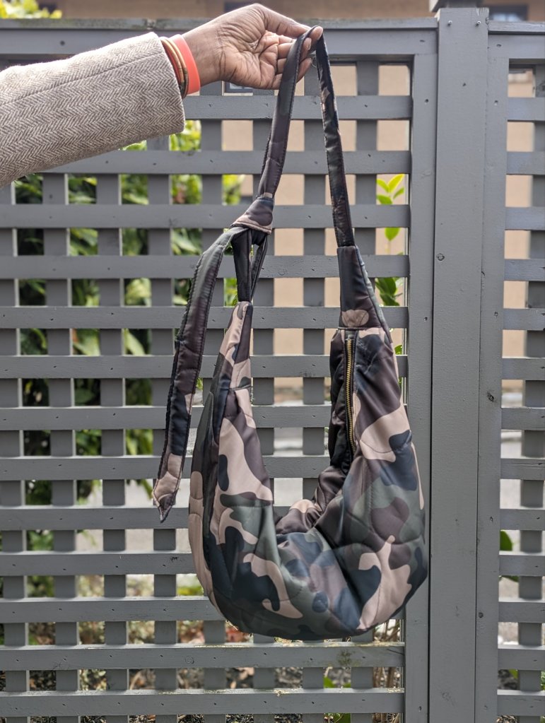 As far as lessons learned from making this bag……I definitely used the wrong zipper. I got a 22″ jacket zipper because it was strong and study for a bag. This became problematic when I had to put zipper stops on and the metal stop got in the way. I really had to work around it while sewing and topstitching. I also learned I had to be very careful sewing ripstop. I couldn’t finish topstitching the outside of the bag. The bottom walking feet snagged the ripstop when I was securing the beginning and end of my seams. It even snagged when I was trying to shimmy the bag under the foot to topstitch. I left it at a quarter of the way topstitch, which KILLS me!!! Even the snags are eating at my soul but my sister said that they didn’t look that bad. I also should’ve started with a fresh ultra sharp needle but I still love it and super happy that I stuck to making the larger size.